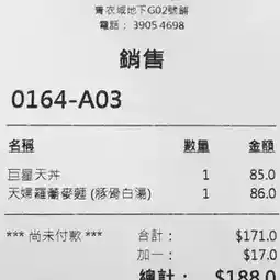 The No. 1 Japanese Tempura Shop is located at Shop G02, G/F, Tsing Yi Square. Because of its good taste, there is always a long queue. It is the best tempura I have ever eaten, so it is worth recommending. There is also a takeaway service: 39054698
