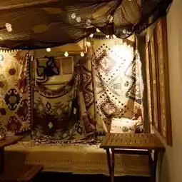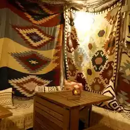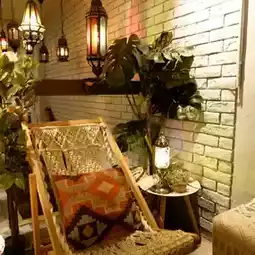 Environment: The facade is decorated in dark blue, and the interior has a basement and a first floor. The check-in area on the ground floor is a blue staircase near the door, modeled after the blue town of Chefchaouen in Morocco. The stairs are filled with colorful potted plants, and it really feels like being in a foreign country, so there are often customers at this location. On the other side is a bar counter and a booth with Turkish carpets. Going up the stairs with totem tiles, upstairs is a dining area full of Turkish characteristics, hung with colorful mosaic chandeliers and ethnic carpets. The decoration is very thoughtful, and with relaxing music, it creates a comfortable atmosphere and environment.