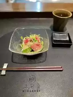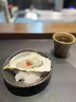 The set is quite rich, first with appetizers: mint salad, eggplant and raw chicken. First time eating raw chicken, I didn't expect it to taste good, a bit like smoked salmon. Then came the oysters, big and fresh! There are five kinds of sashimi: red sea shrimp, oily fish, tonga, scallops and tuna. I like that the toga is plump enough and the shrimp oil is fresh enough.