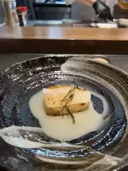 The crust of the fish is pan-fried until golden brown and crispy, and the fish is smooth enough. The meat of the black-haired pork shoulder is fried just right, not old; and the sauce is quite good. Then eat the steamed egg with black truffle flavor very fragrant! Finally, the fried rice is very special and sour. After eating half of the fried rice, half of it is left. You can eat rice with tea. Dessert is chocolate ice cream~