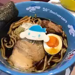 This popular Toyama Noodle House has won the "Japanese Tokyo Ramen Show 5 Years Champion" before doing Melody theme👀 Now doing 20th anniversary festival😍 From October 1 to December 31 are cinnamon dog theme😋 door, store decoration, water cup, food are surrounded by full of cinnamon dogs😆 If you are cinnamon dog fans must not miss🥰