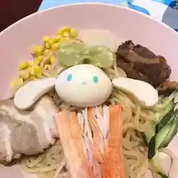 It looks very cute, using the original sugar egg, printed with cinnamon dog 🤣 using fish slices built into the left and right ears 🤣 very match theme 😆 with crab sticks, cucumber strips, corn, pork cartilage, Japanese barbecue 🙆🏻 ♀️ fish soup rich, noodles enough bouncy 👍🏼