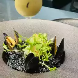 The pasta is soft and moderately soft surrounded by Creamy ink enveloping every grain of rice, full of creamy ink aroma, rich seafood ingredients with scallops, fresh shrimp, mussels, fried with butter, very fresh