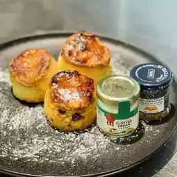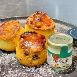 The English muffins made here have a rich buttery and salty flavor, are soft and slightly sticky, very authentic, with an emphasis on not sweet, and with the jam and Clotted Cream and muffins provided by the store, are best friends, both grape and original