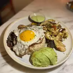 Very rich ingredients Avocado, roast chicken, roast beef, black beans, sunny-side-up egg