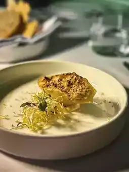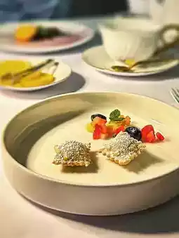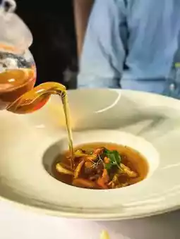 The chicken soup is double-boiled, first boiling the chicken shell, then adding vegetables to absorb the oil, and served with traditional Italian gnocchi and wild yellow mushrooms;