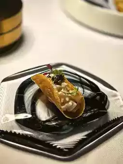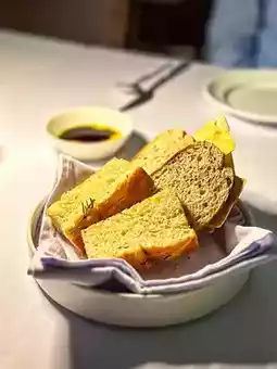 The staff first served bread, respectively vanilla bread, multi-grain sourdough bread and thin crisps, simple with black vinegar and olive oil is good😌 Another Finger food is shrimp ta he sashimi with caviar, refreshing and with salty freshness😌