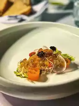 Alaskan crab meat, with lobster soup jelly, caviar and salad vegetables, etc., mixed and eaten, rich and fresh and salty freshness, is a good appetizer 😋