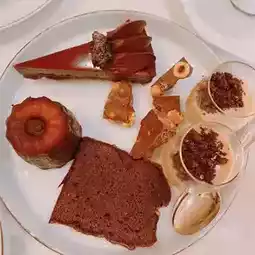 (mousse is very smooth, but the taste is sweet), nut chocolate (should be selected dark chocolate, chocolate taste is very strong), chocolate banana cake (soft taste, banana puree sweet), crepe surprise (the outer layer has a thin caramel wrapped, the inner layer is very fragrant Rum wine, the first bite feels D tough, but after tasting the wine flavor gradually evaporates, and moist, becomes relatively rich than chocolate, pound cake