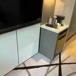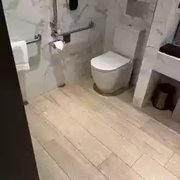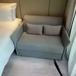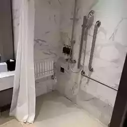 The accessible rooms at the Royal Hotel are spacious in the hallway, with a lower washbasin and a bathroom location, which has changed from the original glass door to a shower curtain, but there is an unconciliatory design that has a step