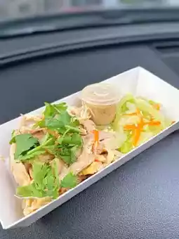 ▫️ Can be served with spicy sauce / Japanese sesame sauce 🇯🇵 Today I didn't want to eat spicy, so I chose sesame sauce 🙌🏻 Hand-shredded chicken is very tender and smooth, sprinkled with sesame and sesame sauce is very fragrant 🥰 Next to sweet cauliflower shreds 🥬