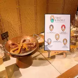 ✅ Dessert: Twist and Buckle Churros counter, rotating ice cream counter, cheesecake, fruit tart