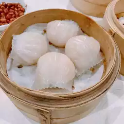 Another extremely large shrimp dumplings filling crystal clear thin skin while being able to wrap so much shrimp really test the master's skill 😍 shrimp meat is crispy and fresh and tasty is worth trying 👧🏻
