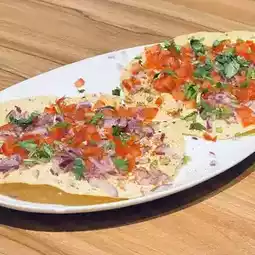 Fried Indian pizza with red onion, tomato, coriander and spices, the pizza is crispy as chips, with salad-like ingredients, most like the stimulation of red onion and coriander with the freshness of tomatoes, Indian cuisine is considered a very fresh taste, very appetizing starter