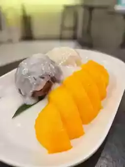 ▫️ Mango is very sweet 🥭 One side of black glutinous rice and one side of white glutinous rice 🍚 Warm with coconut milk is simply my favorite 🥰
