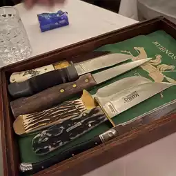 Before serving the steak, the waiter will let you choose your favorite knife and saw steak🔪