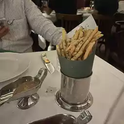 It is thin fries and fried with duck oil - the fries are fried crispy and fragrant!