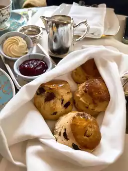 Orange and grape muffins with homemade jam and concentrated cream🍇