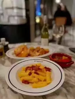 There is an egg yolk Guanciale Pecorino Romano🧀 The amount of black pepper is not much, stirred and more fragrant. The creamy bacon is very crispy. The pasta mixed with rich sauce enhances the aroma of cheese🤓