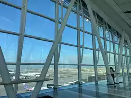 The floor near the window is also designed with glass 🪞 material, you can see the aircraft ✈️ from the bottom of your feet 🦶🏻 through the glass, and you can also see the third runway of the airport from a distance, very special ⭐️