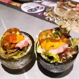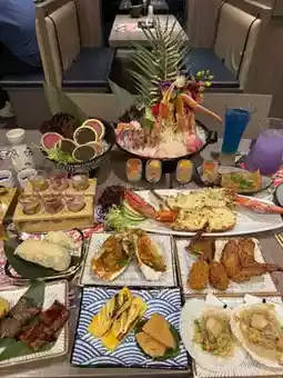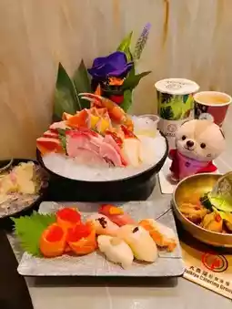 Sashimi ~ swordfish, oily fish. Pond fish, red mussels, salmon, scallops, red shrimp, sweet shrimp, Thai tiger shrimp ... ~ basically ok special Thai tiger shrimp sauce is very good 👍😋