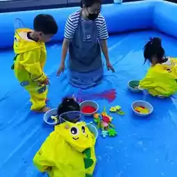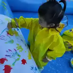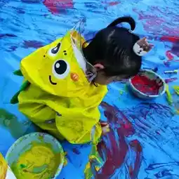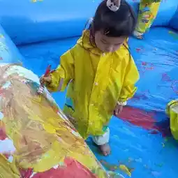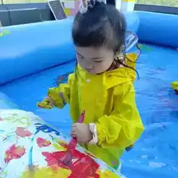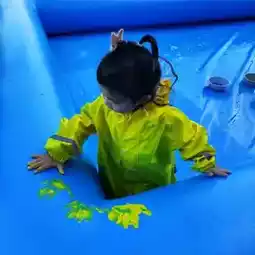 The paint is easy to clean, just rinse and rub it, the workshop will also provide a raincoat, so it won't be too dirty🤭 (Adults can play together in the pool, but no raincoat is provided!)
