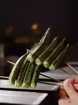 🥬Okra Finally, a refreshing and sticky okra skewers clears away the greasiness ~