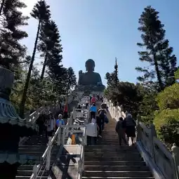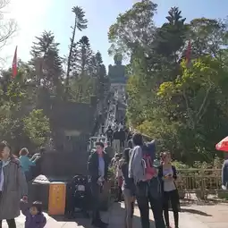 The answer is obvious and I chose to take the ngong ping 360, which is their cable car up and this cable car ride is also a tourist attraction in Hong Kong. The ride gives you a magnificent view of Hong Kong, the big Buddha and the mountains surrounding it. Once you reach the top, be prepared to climb a long long flight of stairs which leads to big Buddha. There, you will see devotees praying to Buddha and you can get a sense of peace.