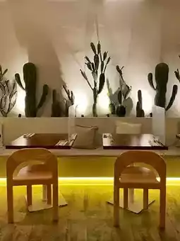 ▫️ The restaurant is decorated with Thai style 🇹🇭 with rattan chairs, cactus 🌵, sunshade ⛱ and tatami mats, making people feel like they are on vacation 🏝