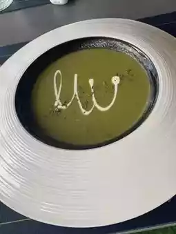 It's Japanese soup - broccoli cream soup, in fact, my mother is not very Western soup, it heard is cream soup thought to choose salad, but then heard that broccoli cream soup said very good, it seems that like broccoli mother did not think it can become broccoli, drink although broccoli flavor is not as strong as usual Chinese soup, but more smooth, quite good ~ ~