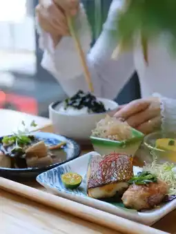 Japanese set meal, appetizers include appetizing sour pickled carrots, tender tamagoyaki, refreshing and fresh spinach, and a healthy plate of wild vegetables: carrots, kelp, lotus root, gelatin, mushrooms, potato pieces ~