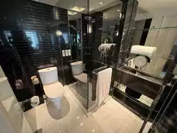 Most satisfied, of course, as always high standard accommodation environment, but personally like the city view room bathroom design, because the Queen's Statue Square view room layout is a little different, the washbasin will be placed in the middle of the shower area and bathtub.