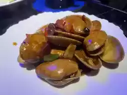 Stir-fried king mussels with bean curd and pepper: The mussels are very big, very spicy.
