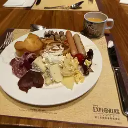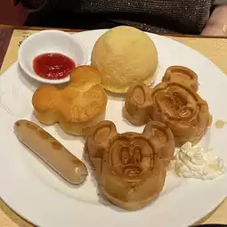 🥰 Breakfast included, disappointment is one hour dining time, super rushed, 😾😿 But his Mickey Mouse waffle is really 100 points🤫
