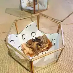 From the jewelry box-like container unfolds the sense of anticipation up up 🆙 the bottom of the bread tastes actually like a thin crispy serve with creamy very much beef liver mushroom black truffle sauce on top very tasty!