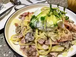With poached egg🥚😍, the plate of pasta has many dishes, the pasta is cooked just right, with the aroma of bacon and light egg ~