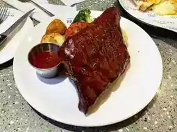 A huge plate, and backed potatoes, tomatoes, zucchini, cauliflower, with BBQ sauce. The pork ribs are grilled instantly, grilled very fragrantly, bone and meat separation🤤 The meat is tender!