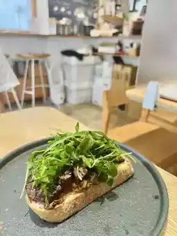 The toast is crispy with a piece of wagyu beef on top. The cheese flavor is not too heavy and fragrant enough. The rocket is not bitter, and with caramelized onions, the whole toast goes very well!