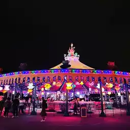 The fantasy worlds of morning and evening are two completely different places. At night when the carousel🎠, rotating cups, and the lights of the story theater are lit up, the whole fantasy world immediately becomes warm and romantic🌹.