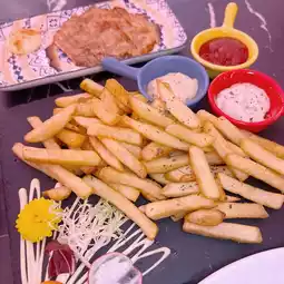 The fries are hot, fried and crispy, served with homemade mustard, truffle sauce, ketchup, three different flavors 😋 Great for drinking.