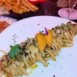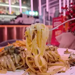 The bar restaurant offers a variety of food 🤩 a variety of spaghetti, steak, snacks, skewers, the plate is beautiful and very thoughtful 😍