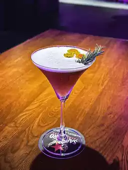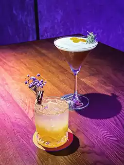 Vodka as a base, added osmanthus sugar water, honeydew liqueur and pineapple juice prepared, the color is gradient, osmanthus flavor fresh with rich pineapple flavor, a bit like pineapple ice, the taste is not as sweet as quiet noble people, and folded with purple flowers for garnish to add elegance, beautiful and quite good to drink, recommended 👍🏻