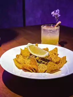 This is a Qatari specialty snack, nachos with chicken and corn kernels equivalent to eat, rich and crispy, with lemon juice after more tasty, as a wine snack is good 😌