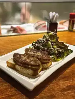 The goose liver is roasted until fragrant, rich in fat, crispy on the outside and soft on the inside; in addition, after the toast absorbs the goose fat, it is fragrant and crispy, one piece per person is just right, eating with goose liver will not be too greasy😌