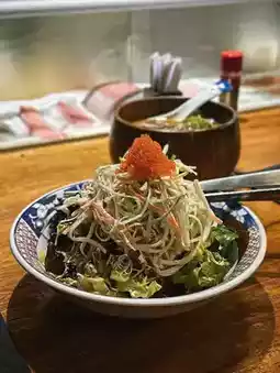 Fresh salad vegetables with lots of crab sticks and crab seeds, refreshing taste, a must order for those who like crab seeds salad😌