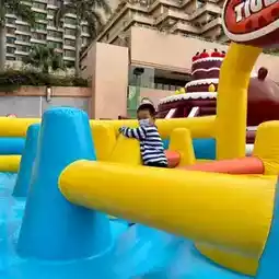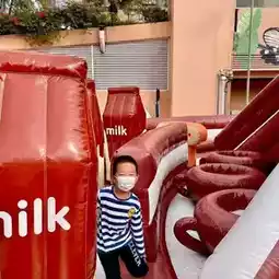 My brother likes [Tiger's Olympic Range Sports Arena] 🐯, there is an inflatable slide up to 4.5 meters (about two stories high). No wonder Brother Cheng keeps climbing high and sir down ~ After coming down, he has to climb and jump to avoid obstacles🤪!