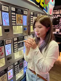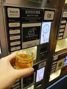 Sakez sake self-service machine, use your mobile phone QR code to scan the sake you want to drink, 30ml each ✨ My favorite golden pattern Akita Yamabuki Gold matured ancient sake, amber color super easy to enter🤭