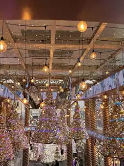 The ceiling has super many light bulbs, creating a sky full of twinkling star lights, very magical and grand