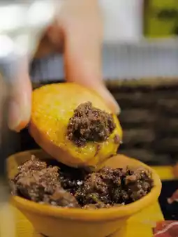 There are three frozen meats, Portuguese spicy sausage and Iberian black hair pork ham, served with mini crispy toast, dipped in extra cold pressed olive oil🫒 and topped with Portuguese sardine sauce, salty and fragrant The crispy toast has an extra layer, it goes very well!