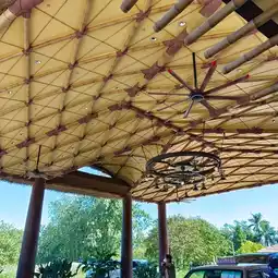 There are floor-to-ceiling windows everywhere, bamboo pillars, and high ceilings in the hall!